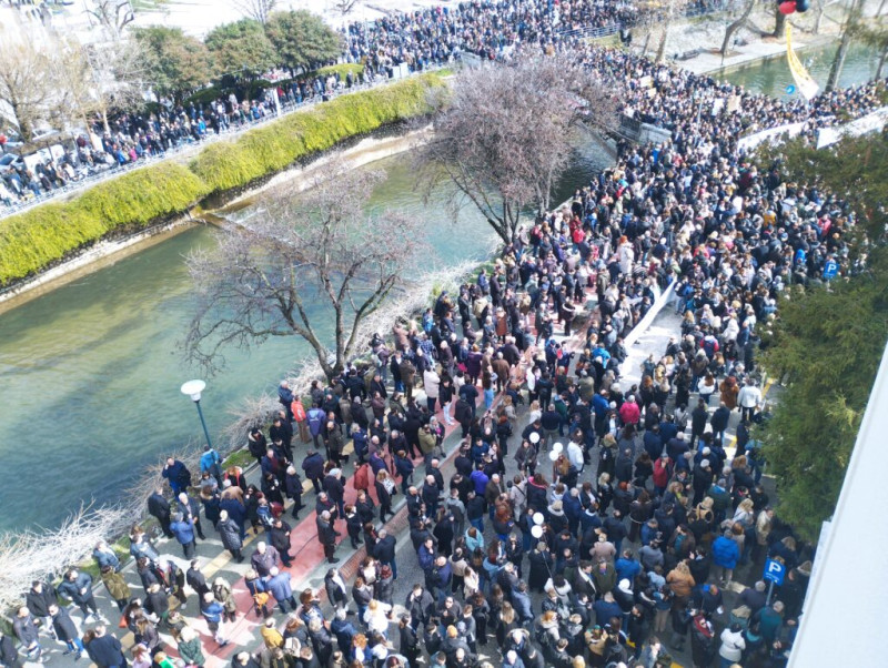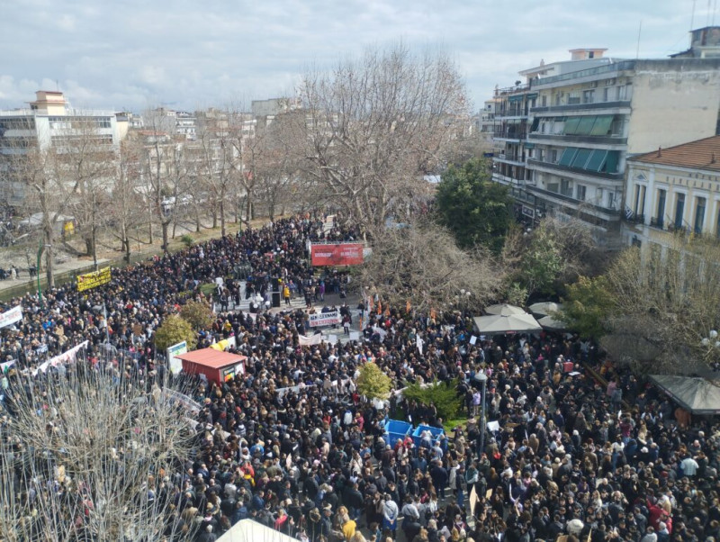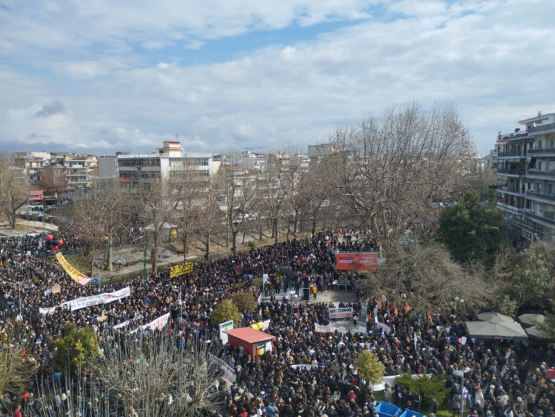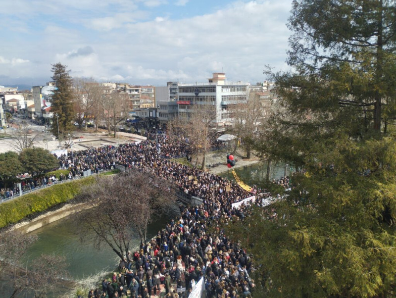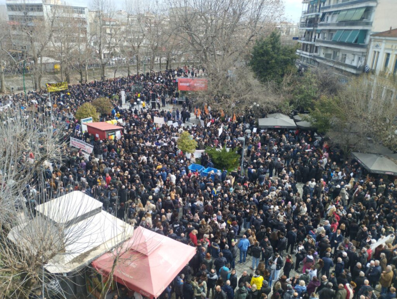 Η μεγαλύτερη συγκέντρωση που έγινε ποτέ στα Τρίκαλα βρίσκεται σε εξέλιξη από τις 11 το πρωί της Παρασκευής με το αίτημα της δικαιοσύνης για τους 57 νεκρούς των Τεμπών να είναι πανλαϊκό.