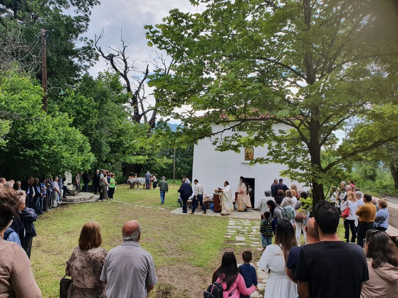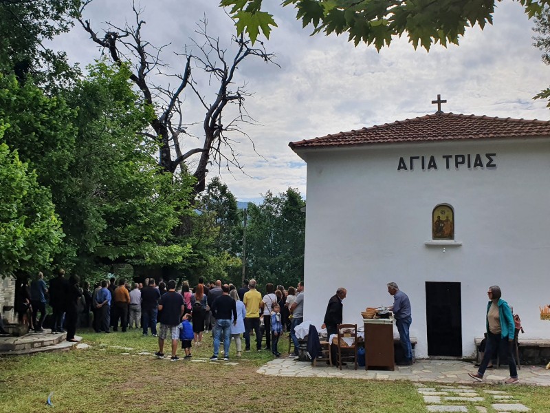 Πλήθος κόσμου βρέθηκε στο εκκλησάκι της Αγίας Τριάδας που βρίσκεται στην περιοχή της Γκούρας όπου πραγματοποιείται και η Γιορτή Κάστανου αλλά και άλλες εκδηλώσεις.