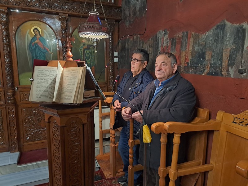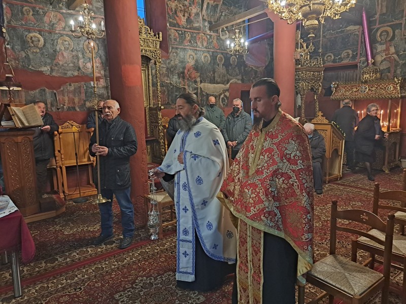 Ο Μέγας Εσπερινός τελέστηκε παρουσία κατοίκων του χωριού και της περιοχής από τους Ιερείς της Ιεράς Μητροπόλεως Σταγών και Μετεώρων, π. Σταμούλη Γεώργιο και π. Ράπτη Γεώργιο.