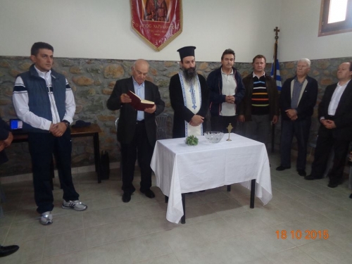 Στο χώρο του συλλόγου συγκεντρώθηκαν το πρωί της Κυριακής τα μέλη του συλλόγου όπου ο π. Αχίλλειος τέλεσε τον αγιασμό για τη νέα χρονιά που θα έχει και πάλι πολλές δραστηριότητες με προσφορά στα πολιτιστικά δρώμενα του τόπου.