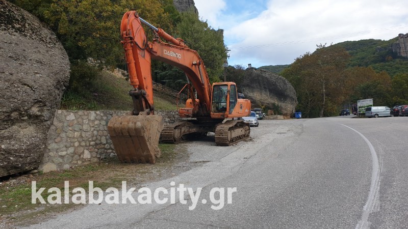 Ήδη στο σημείο έχει μεταφερθεί μηχάνημα για την διαμόρφωση του δρόμου και στην συνέχεια θα ακολουθήσουν οι παρεμβάσεις με δσεξιά και αριστερά του δρόμου με τα προστατευτικά όπως και στον υπόλοιπο δρόμο των Μετεώρων.