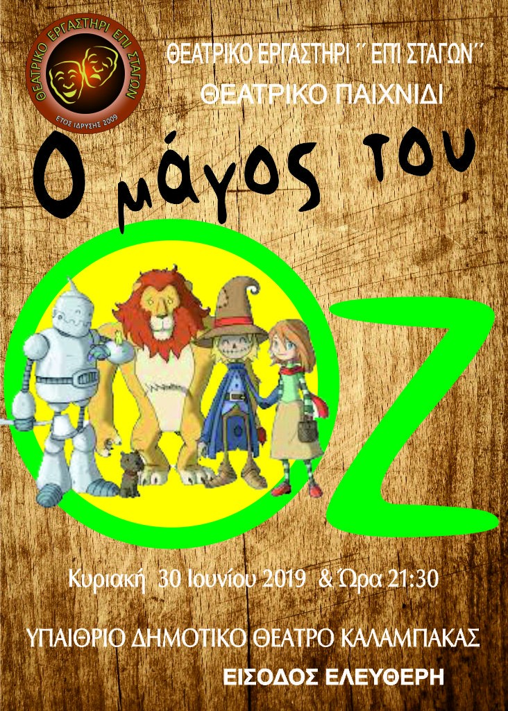 Το Θεατρικό Εργαστήρι ” Επί Σταγών ” , το τμήμα του ”Θεατρικό Παιχνίδι” και η δασκάλα τους Μπλούτσου Μαρία παρουσιάζουν τη θεατρική παράσταση Ο Μάγος του Οζ του ΜΠΑΟΥΜ ΛΥΜΑΝ ΦΡΑΝΚ