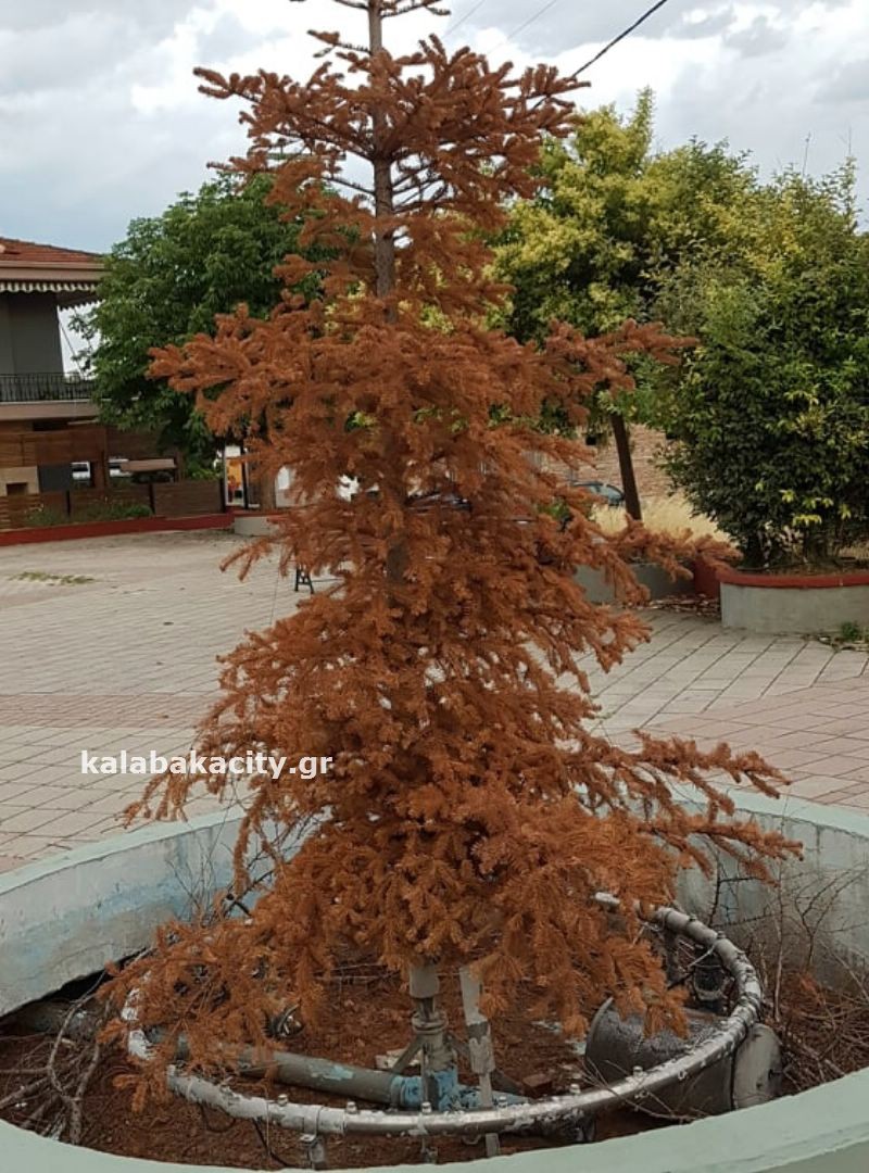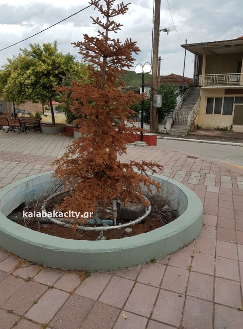 Το έλατο που πλέον έχει ξεραθεί… παραμένει στην πλατεία να θυμίζει τα Χριστούγεννα που πέρασαν και ίσως περιμένει τα επόμενα!