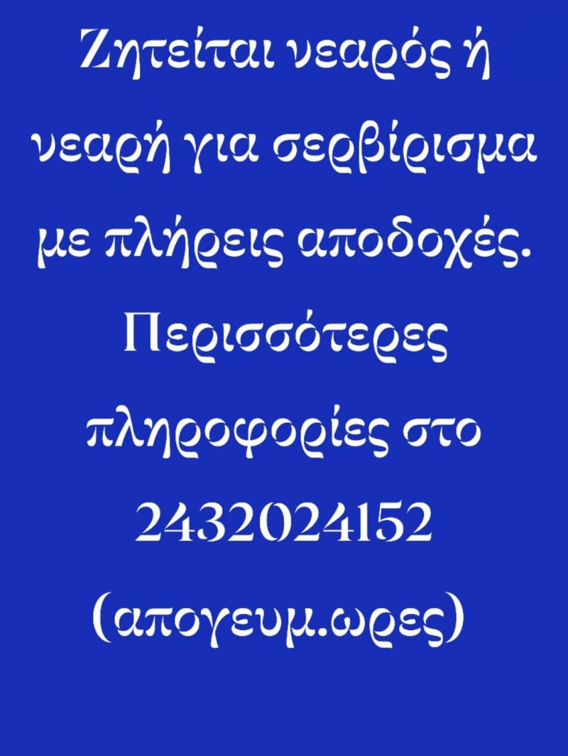 Περισσότερες πληροφορίες στο τηλ 2432024152 από τις 17:00 και μετά.