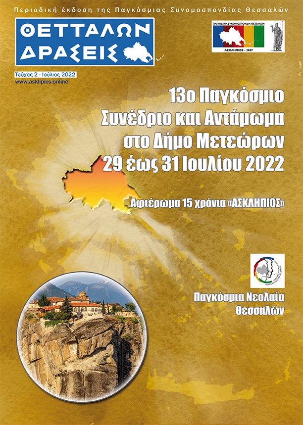 Το τεύχος είναι αφιερωμένο στα Μετέωρα, αφού το καλοκαίρι οι Θεσσαλοί Απόδημοι θα ανταμώσουν στην Καλαμπάκα προκειμένου να πραγματοποιηθεί το 13ο Παγκόσμιο Συνέδριο και Αντάμωμα Θεσσαλών, καθώς και στα 15 χρόνια ζωής της Συνομοσπονδίας. Η θεματολογία του δευτέρου τεύχους ΙΟΥΛΙΟΣ 2022 έχει ως εξής: