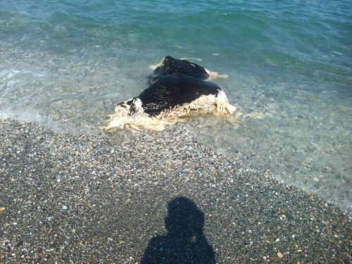 Όπως βλέπετε στις φωτογραφίες που δημοσιευονται στο Postlarissa, ένα νεκρό μοσχάρι σε κατάσταση αποσύνθεσης ξεβράστηκε από τη θάλασσα!