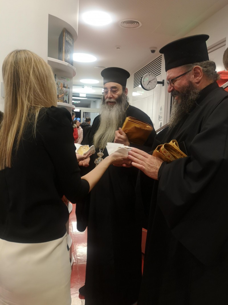 Τις πίτες ευλόγησαν ο Αρχιμανδρίτης Λεόντιος Πετρίδης και ο Πρωτοπρεσβύτερος π. Ευάγγελος Γκιουζέλης.