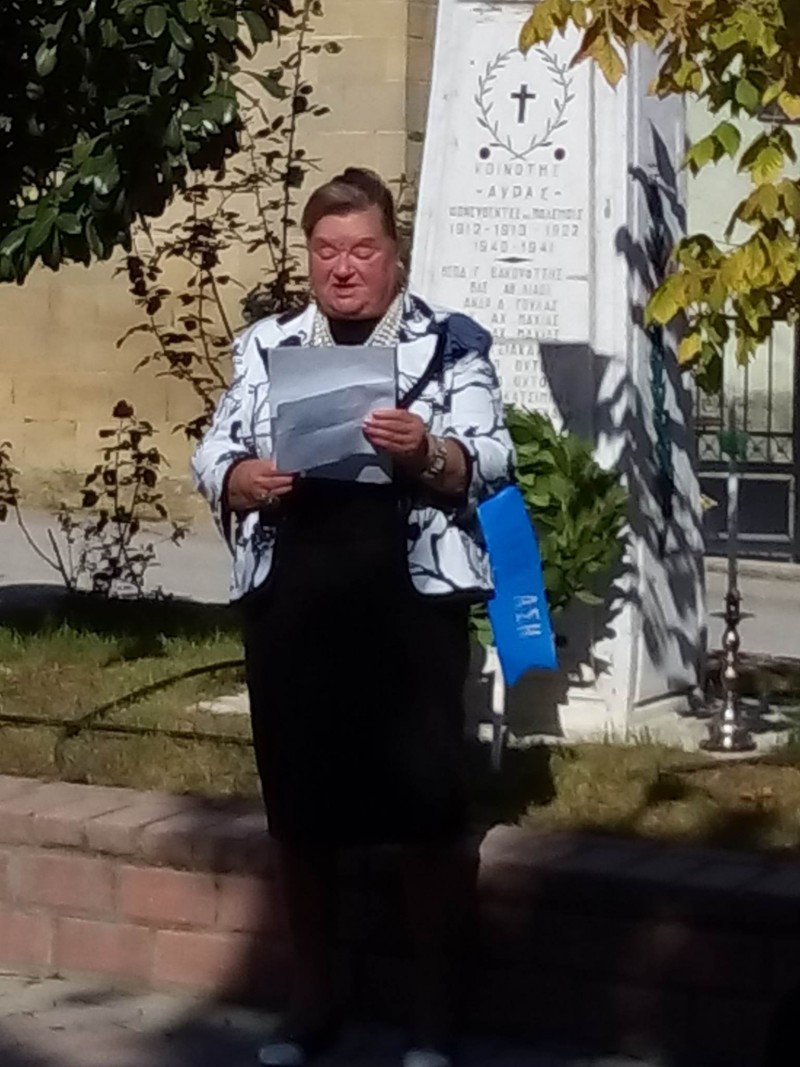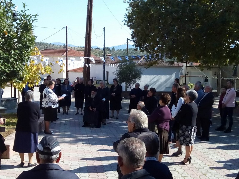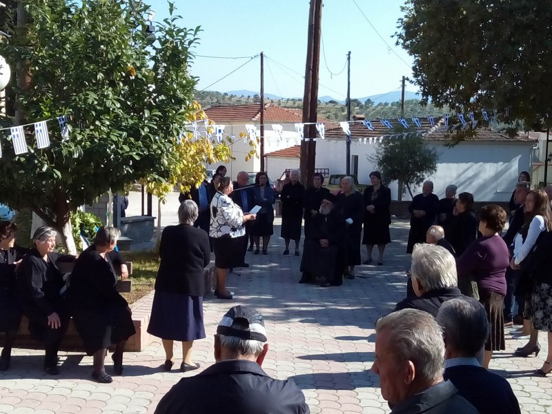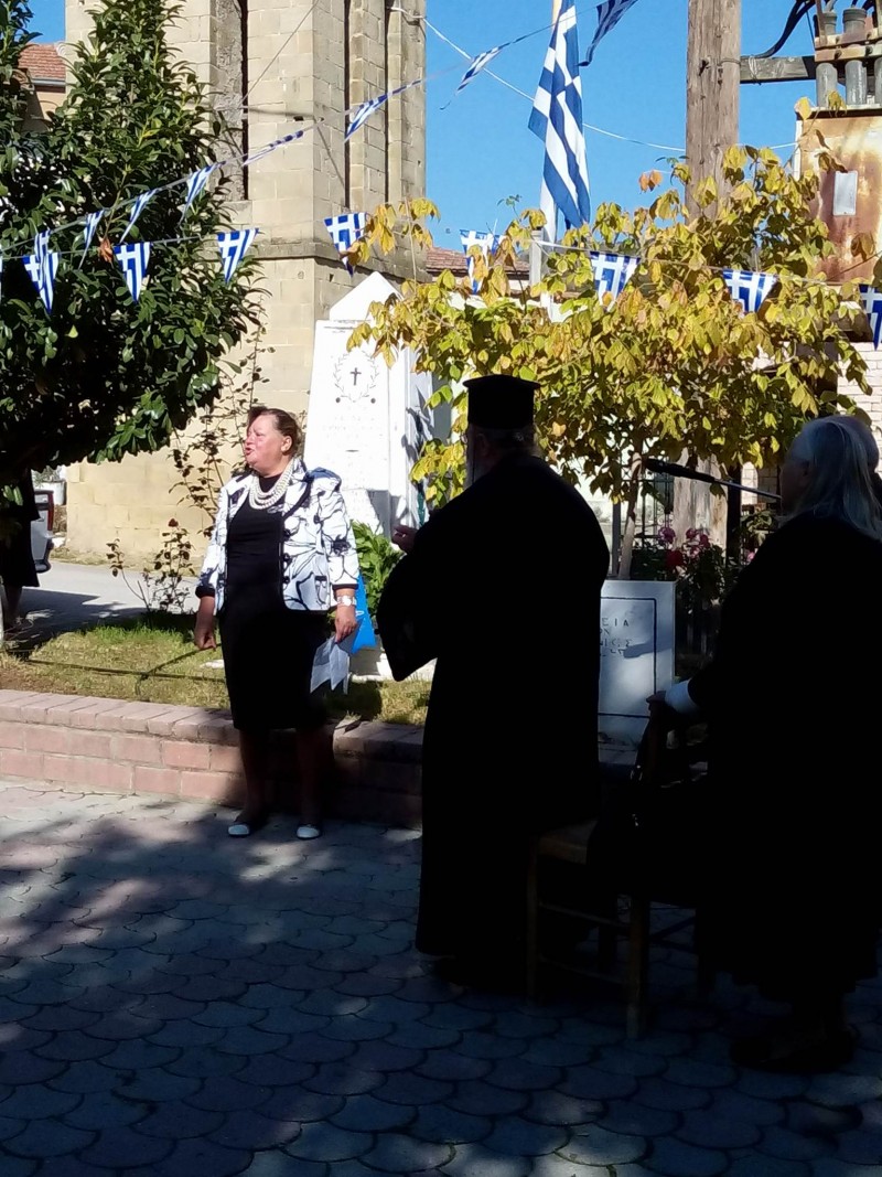 Η κάτοικος του χωριού και δραστήρια κα Δέσποινα Δημάδη μετά το πέρας της Θείας Λειτουργίας στην εκκλησία του χωριού, με τους κατοίκους τουν χωριού συγκεντρώθηκαν στο μνημείο των πεσόντων και έκανε σχετική ομιλία για τις μέρες του 1940 και διάβασε ποίημά της για το ΟΧΙ του 1940.