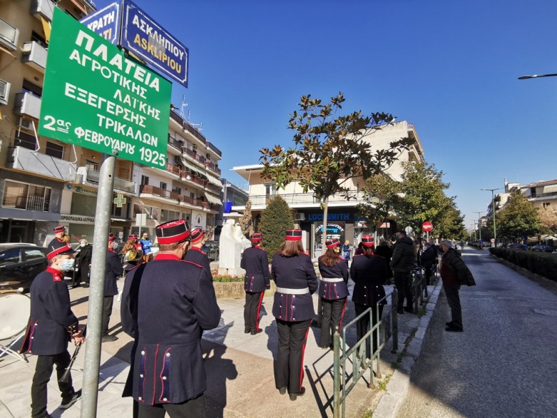 Ο Δήμος Τρικκαίων έχει μετονομάσει πλατεία (στη συμβολή των οδών Ασκληπιού και Ιπποκράτους) σε Πλατεία Αγροτικής και Λαϊκής Εξέγερσης 1925 και κάθε χρόνο διοργανώνει την αντίστοιχη εκδήλωση. Μετά την επιμνημόσυνη δέηση, την κεντρική ομιλία απηύθυνε η υπάλληλος των ΚΕΠ του Δήμου Τρικκαίων κ. Δάφνη Ρίτσα, η οποία περιέγραψε το ιστορικό πλαίσιο και τις αντικειμενικές συνθήκες που κυριαρχούσαν εκείνη την περίοδο, αναφερόμενη ειδικότερα στα γεγονότα της 2ας Φεβρουαρίου 1925 στα Τρίκαλα, που οδήγησαν στις συμπλοκές και τον θάνατο 7 τρικαλινών πολιτών και τον τραυματισμό άλλων.