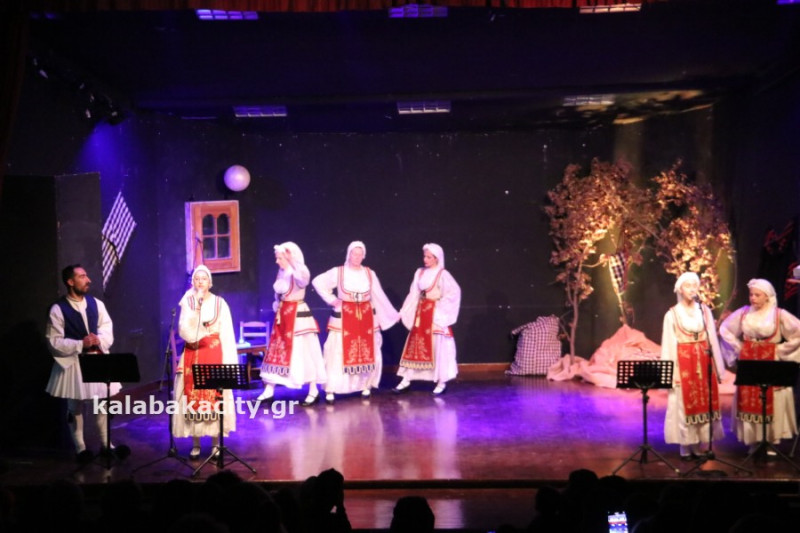Η εκδήλωση έγινε στο Πολιτιστικό Κέντρο Καλαμπάκας με παραδοσιακά τραγούδια, χορούς και αφιέρωμα στο 1821.