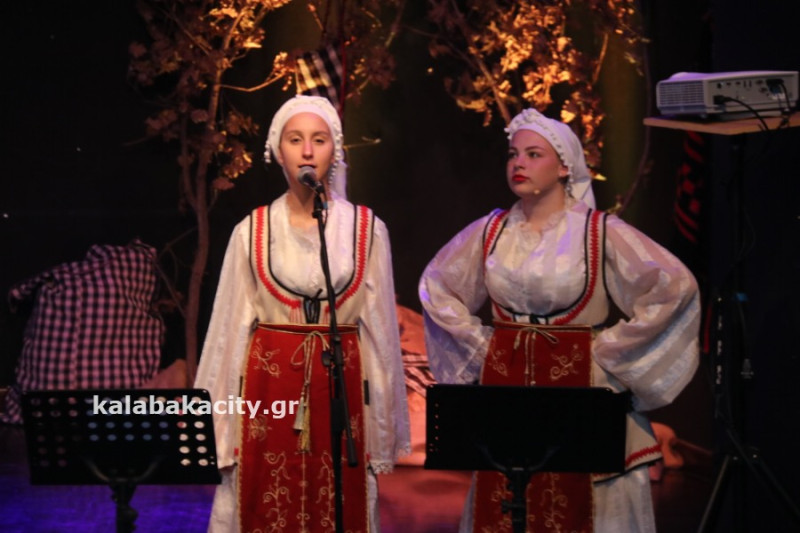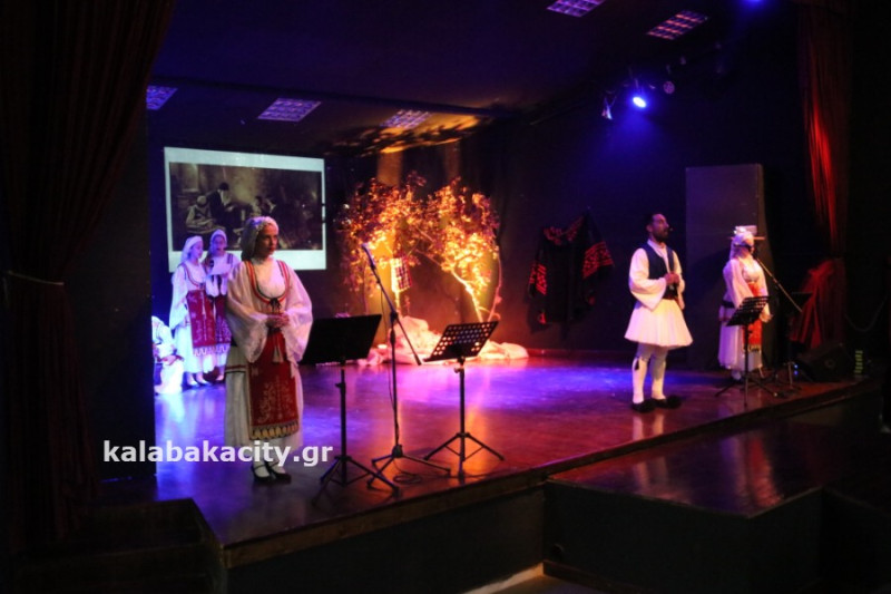 Η εκδήλωση έγινε στο Πολιτιστικό Κέντρο Καλαμπάκας με παραδοσιακά τραγούδια, χορούς και αφιέρωμα στο 1821.