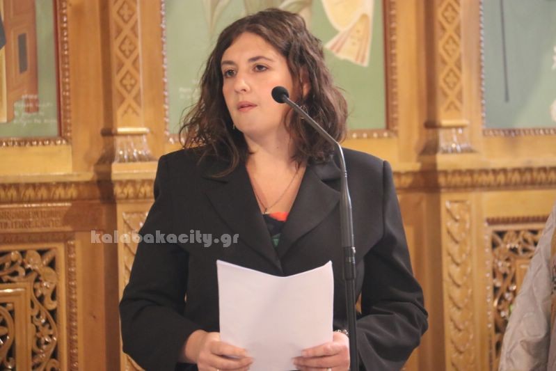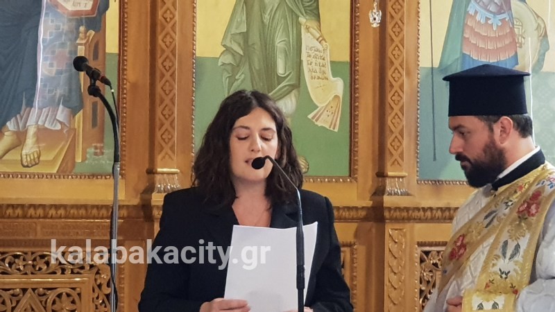 Στη συνέχεια έγινε η εκφώνηση του πανηγυρικού της Ημέρας από την εκπαιδευτικό του 2ου Γυμνασίου Καλαμπάκας κα Περσεφόνη Καλαμπάκα.
