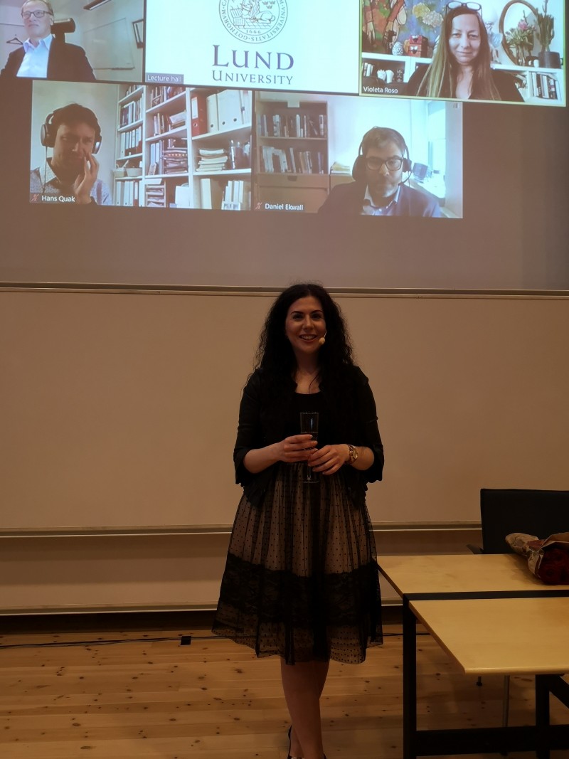 Η παρουσίαση έλαβε χώρα στο πανεπιστήμιο του Lund της Νοτιας Σουηδίας με την εξεταστική επιτροπή να αποτελείται από αναγνωρισμενους καθηγητές στο χώρο, ενώ αντίπαλος ήταν ο διακεκριμένος καθηγητής Hans Quak. Βασικός στόχος της εκπόνησης της είναι η δημιουργία βιώσιμων αλυσίδων εφοδιασμού για τις αστικές περιοχές και πόλεις και η δημιουργία πόλεων με μηδενικές εκπομπες ρυπων.