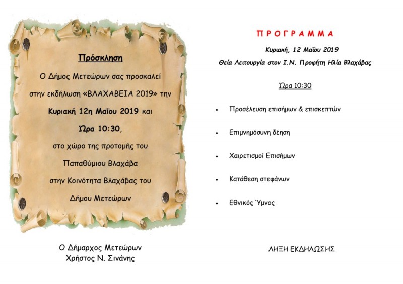 Την Κυριακή 12 Μαΐου η εκδήλωση « ΒΛΑΧΑΒΕΙΑ 2019 » Ανακοινώσεις Από admin Δημοσίευση Μάι 6, 2019 -15:59 0 1.376 Κοινοποίηση FacebookTwitterΗλεκτρονικό ΤαχυδρομείοViber Την Κυριακή 12 Μαΐου στην Βλαχάβα θα πραγματοποιηθεί η εκδήλωση “ΒΛΑΧΑΒΕΙΑ 2019” από τον Δήμο Μετεώρων. 0 1.376 Κοινοποίηση