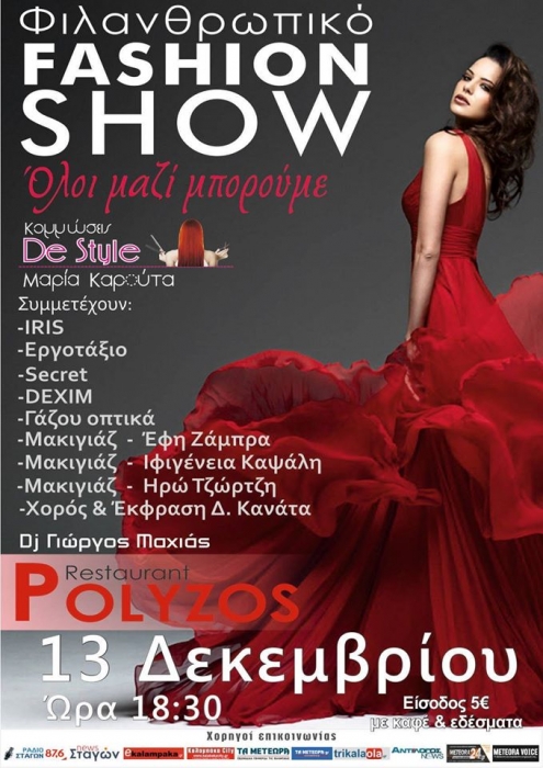 Οι κες Μαρία και Ελένη Καρούτα και φέτος διοργανώνουν με καταστήματα της Καλαμπάκας το Φιλανθρωπικό Show στην Ταβέρνα POLYZOS της πόλης μας και είστε καλεσμένοι όλοι για να στηρίξετε την προσπάθεια.
