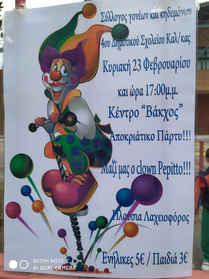 Ο Σύλλογος Γονέων και Κηδεμόνων του 4ου Δημοτικού Σχολείου Καλαμπάκας σας προσκαλεί στο αποκριάτικο πάρτι που θα γίνει στις 23 Φεβρουαρίου στο κέντρο “Βάκχος”