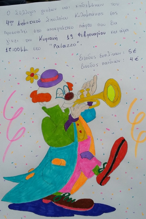 Ο Σύλλογος Γονέων και Κηδεμόνων του 4ου Δημοτικού Σχολείου Καλαμπάκας σας προσκαλεί στο αποκριάτικο πάρτυ