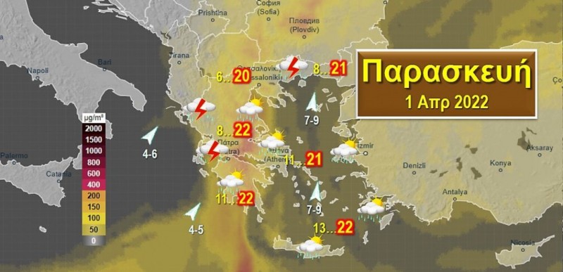 Κορύφωση της μεταφοράς αφρικανικής σκόνης την Παρασκευή με λασποβροχές και καταιγίδες – Το Σάββατο μείωση της αφρικανικής σκόνης