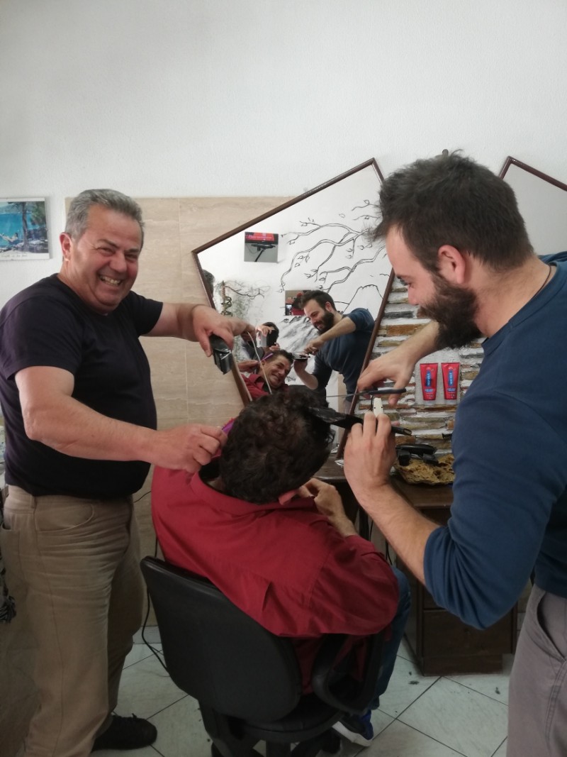 Αυτό ήταν και το λάθος του. Οι δύο άνδρες τον κάθισαν στην κυριολεξία στο σκαμνί και με ψαλίδια, χτένες και κουρευτικές μηχανές να διεκδικήσουν την ψήφο!