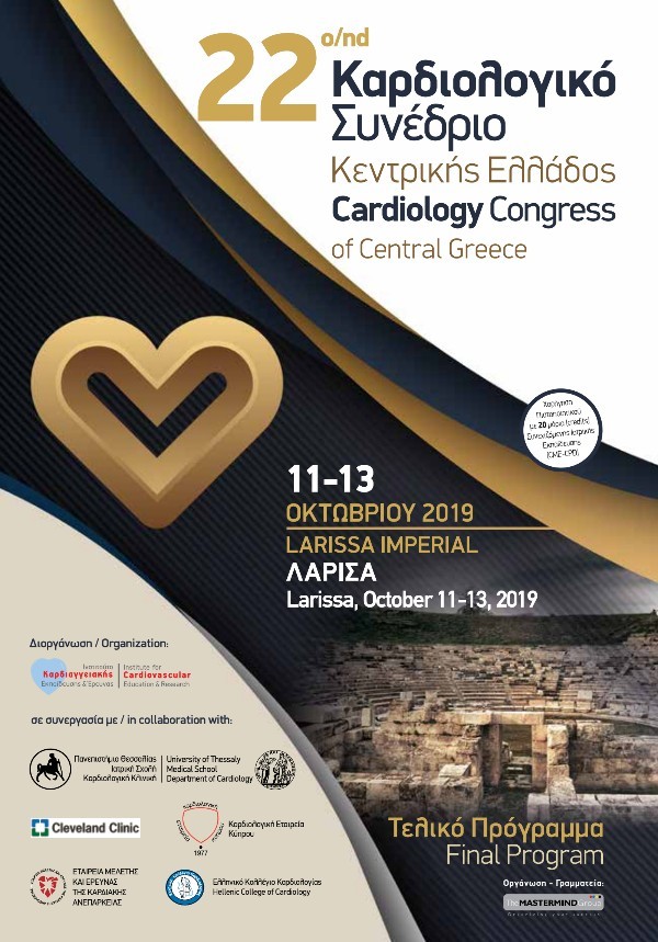 Στην Λάρισα θα διεξαχθεί το 22ο Καρδιολογικό Συνέδριο Κεντρικής Ελλάδος, κατά το τριήμερο από Παρασκευή μέχρι Κυριακή, 11 έως και 13 Οκτωβρίου 2019, στο ξενοδοχείο ‘’Larissa Imperial’’.