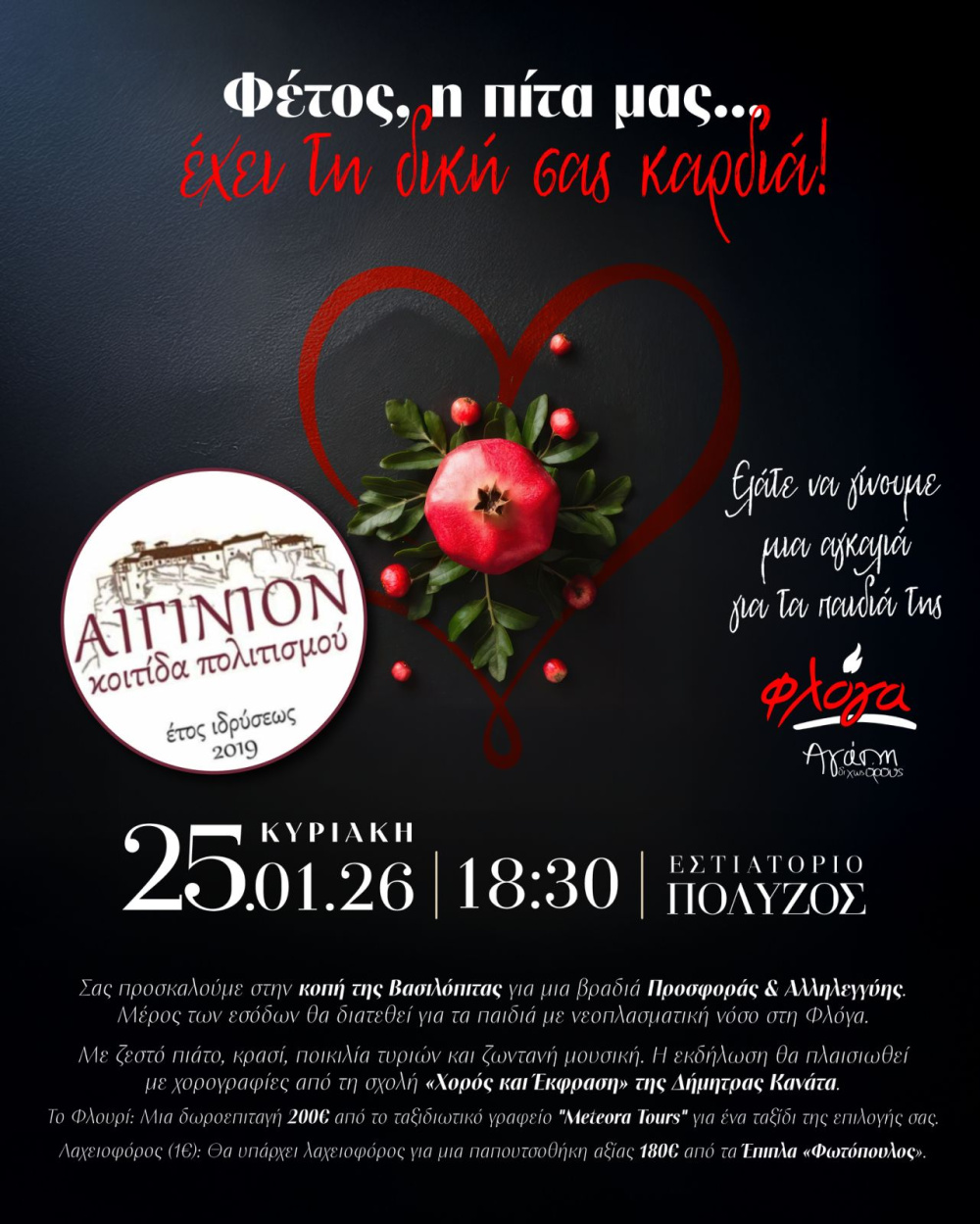 Γινόμαστε μια μεγάλη αγκαλιά για τη «ΦΛΟΓΑ» Τρικάλων, διαθέτοντας μέρος των εσόδων της εκδήλωσης για τη στήριξη των παιδιών με νεοπλασματική νόσο.