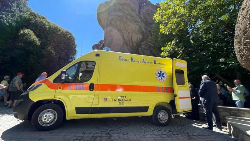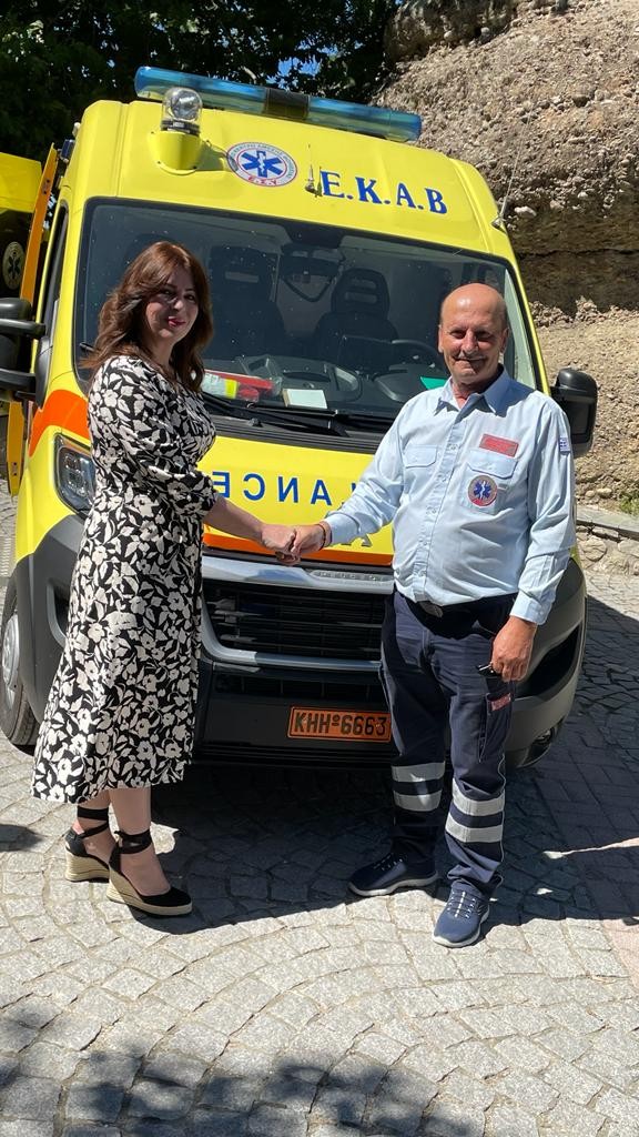 Παραδόθηκε σήμερα παρουσία του νέου Ηγουμένου της Ιεράς Μονής Βαρλαάμ Μετεώρων κ. Βενέδικτου Ζαχαράκη, του Προέδρου του ΕΚΑΒ κ. Παπαευσταθίου και της Τρικαλινής Βουλευτή της Νέας Δημοκρατίας Κατερίνας Παπακώστα, το σύγχρονο ασθενοφόρο όχημα, δωρεά της Ι. Μ Βαρλαάμ Μετεώρων, προς το Κέντρο Υγείας Καλαμπάκας, ένα χρόνιο αίτημα και μια αδήριτη ανάγκη για την ενίσχυση του Κέντρου Υγείας Καλαμπάκας.