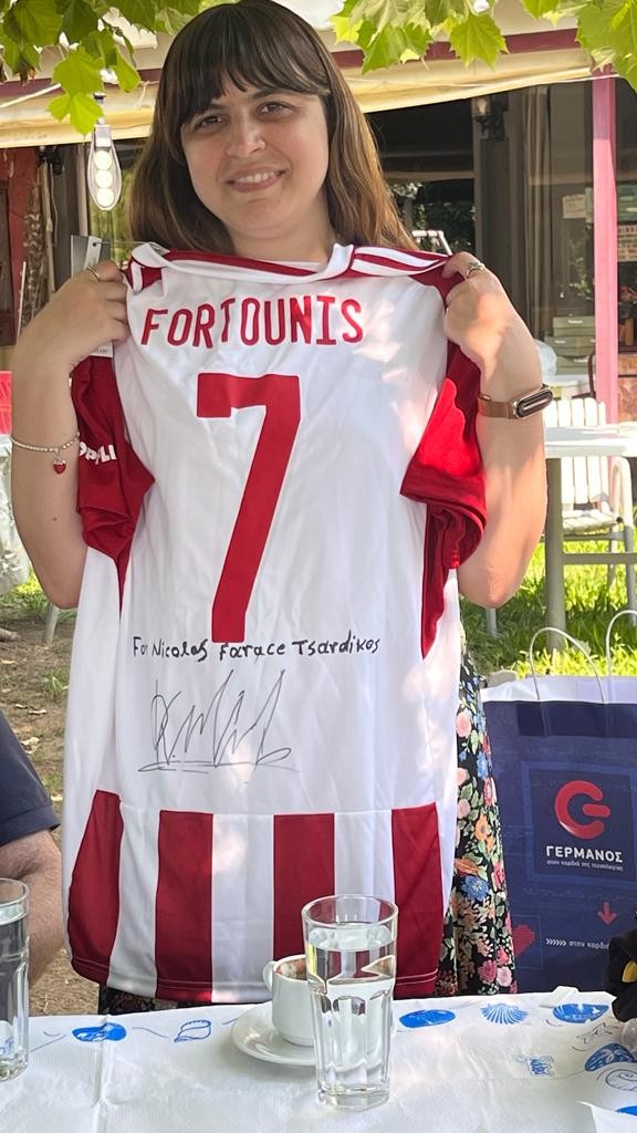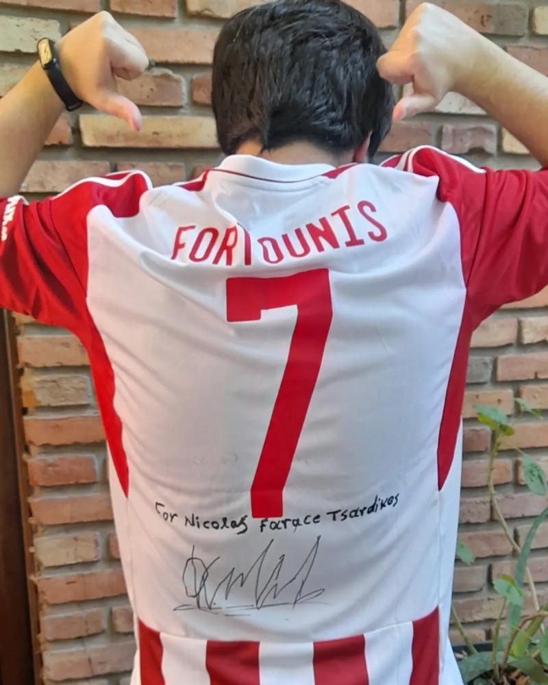 Ο Καλαμπακιώτης άσσος, Κώστας Φορτούνης, υπέγραψε μια φανέλα του Ολυμπιακού για τον γιο της Προέδρου του NOSTOS, Nicolás Farace Tsardikos (δεν συμμετείχε φέτος στο ταξίδι). Να θυμίσουμε ότι ο ίδιος ποδοσφαιριστής είχε δωρίσει, μερικά χρόνια πριν, στον NOSTOS, μια υπογεγραμμένη απ’ τον ίδιο, φανέλα του στην εθνική ομάδα.