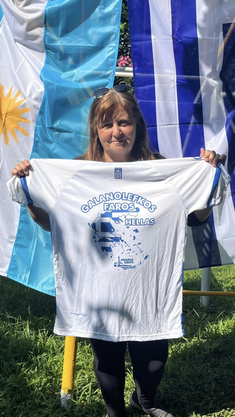 Εκεί όμως που όλοι οι Έλληνες, Ελλάδας και εξωτερικού, ομονοούν, είναι η εθνική ομάδα, γι’ αυτό έλαβαν ως δώρο και μερικές φανέλες του Συνδέσμου Φίλων της Εθνικής «Γαλανόλευκος Φάρος». Και οι φανέλες αυτές βρίσκονται ήδη στο Μπουένοος Άιρες.