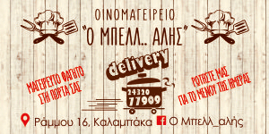 Το Οινομαγειρείο ” Ο ΜΠΕΛΛ..ΑΛΗΣ” στην Καλαμπάκα που βρίσκεται στην οδό Ράμμου 16 προτείνει για σήμερα Παρασκευή 14 Αυγούστου, τα εξής μαγειρευτά φαγητά…