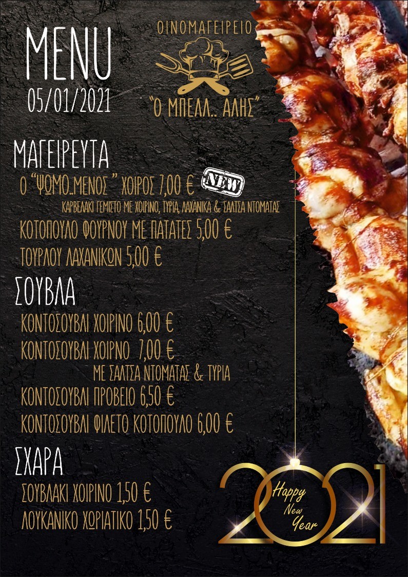 Το μενού για σήμερα στον “ΜΠΕΛΛ… ΑΛΗ” –Ψητό κοτόπουλο, κεμπάπ πρόβειο – χοιρινό, μαγειρευτά, σουβλάκι και λουκάνικο