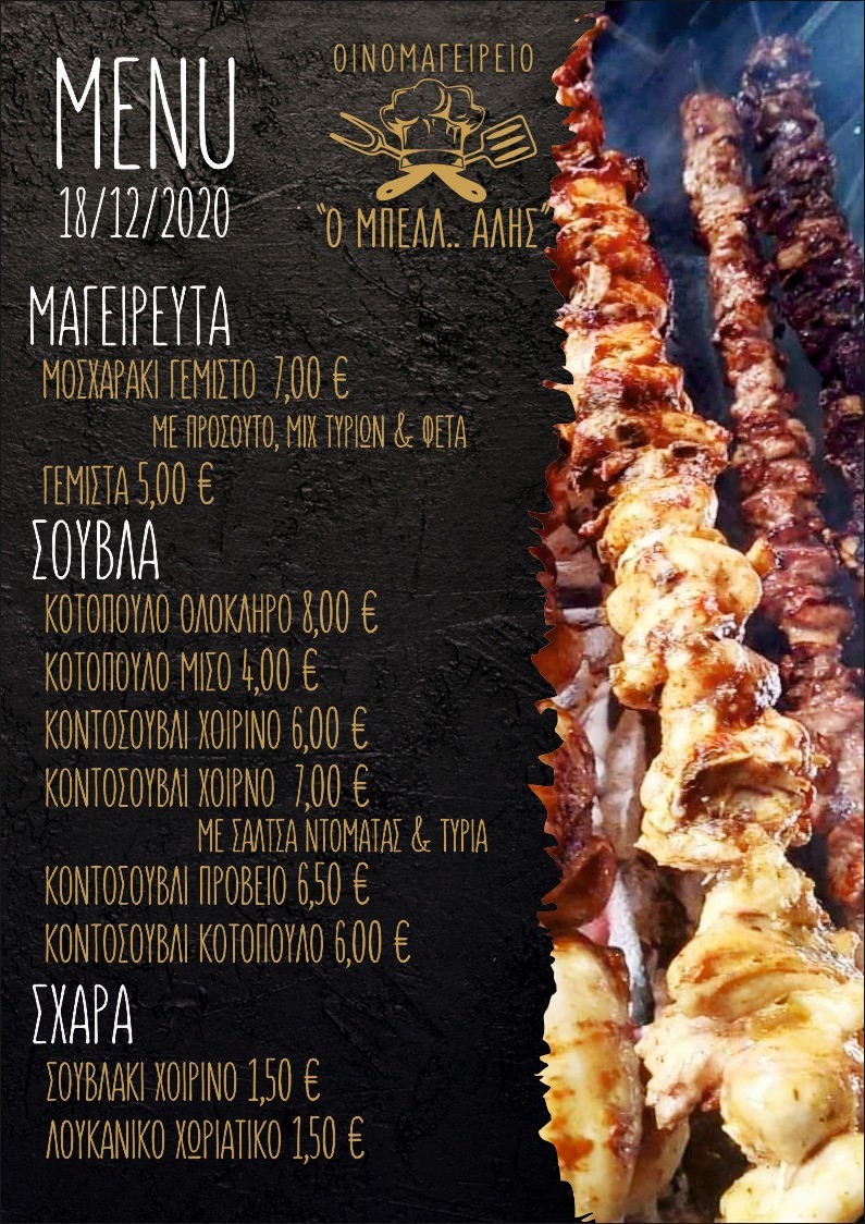 Το μενού για σήμερα στον “ΜΠΕΛΛ… ΑΛΗ” – Ψητό κοτόπουλο, κεμπάπ πρόβειο – χοιρινό, μαγειρευτά, σουβλάκι και λουκάνικο