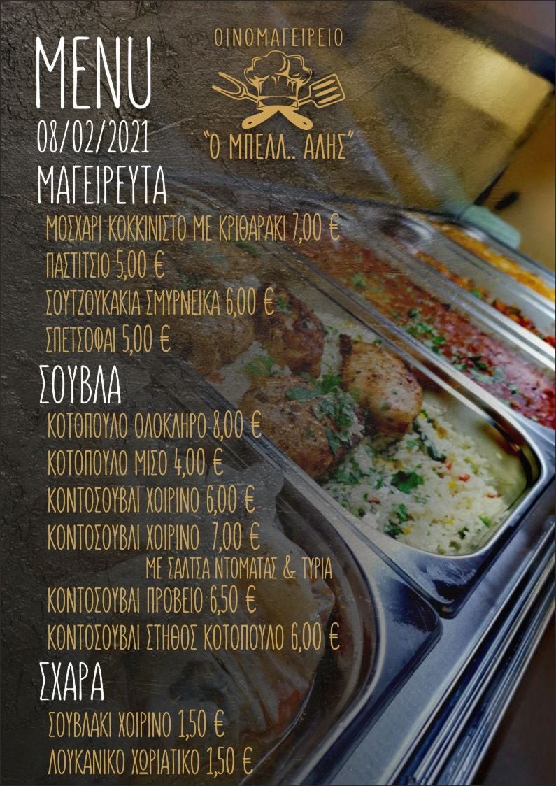 Το Οινομαγειρείο  “Ο ΜΠΕΛΛ.. ΑΛΗΣ” της Καλαμπάκας με το ποιοτικό φαγητό και τις ξεχωριστές του προτάσεις και σήμερα είναι κοντά σας με νέο μενού.