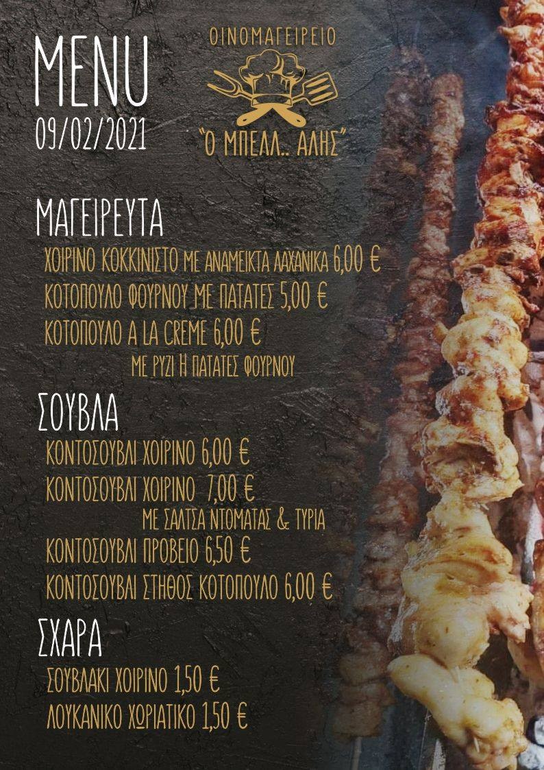 Το Οινομαγειρείο  “Ο ΜΠΕΛΛ.. ΑΛΗΣ” της Καλαμπάκας με το ποιοτικό φαγητό και τις ξεχωριστές του προτάσεις και σήμερα είναι κοντά σας με νέο μενού.