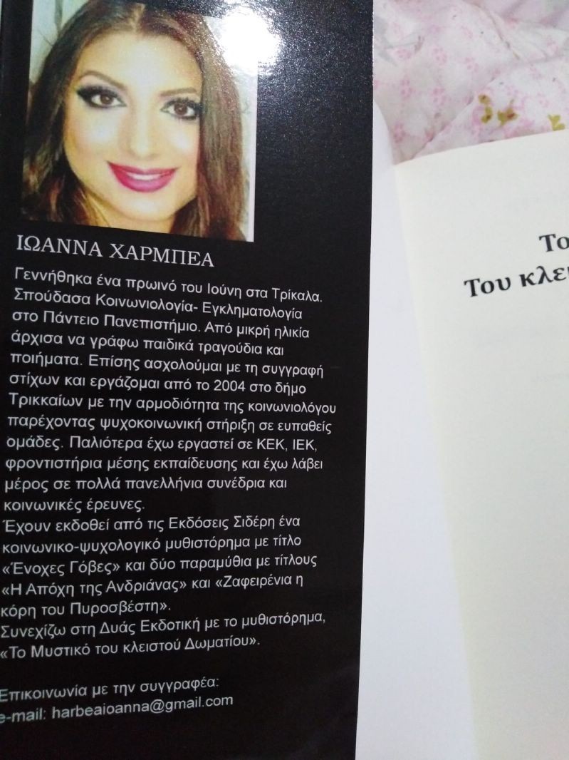 Πληροφορίες για το βιβλίο και επικοινωνία με τη συγγραφέα: FB: Ιωάννα Χαρμπέα  και email : [email protected]