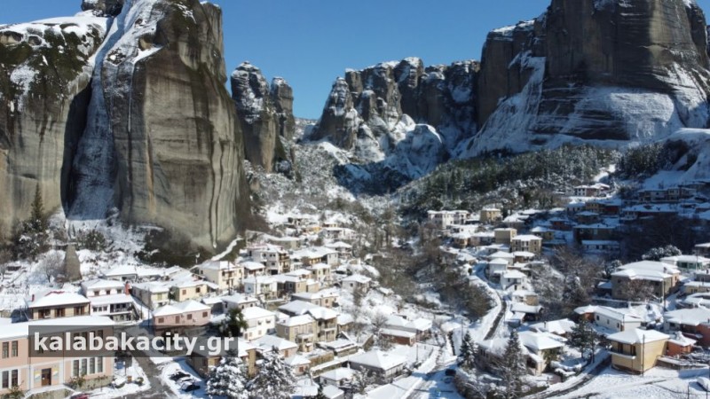 Παγωμένη και όμορφη η Καλαμπάκα το πρωινό της Δευτέρας – DRONE VIDEO – PHOTOS