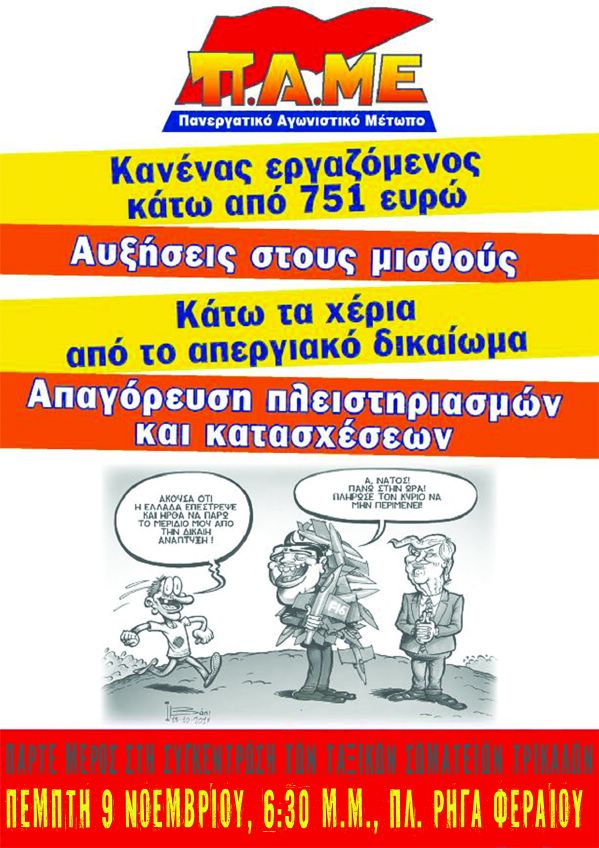 Το ΠΑΜΕ καλεί σε Συλλαλητήριο στις 9 Νοέμβρη στα Τρίκαλα σε παλιά και νέα αντιλαϊκά μέτρα