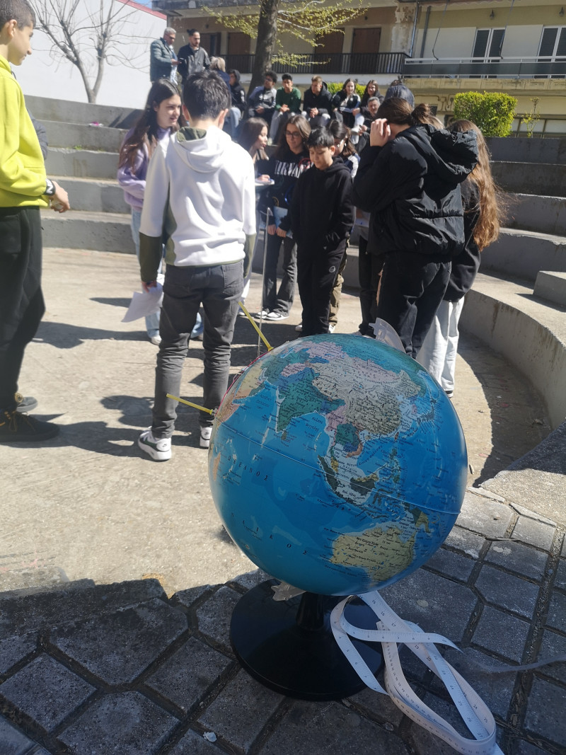 Την Τετάρτη 20/4/2024, οι μαθητές και μαθήτριες της Β΄ τάξης του 1ου Γυμνασίου Καλαμπάκας με χάρακες, γνώμονες και ορθοστάτες υπολόγισαν για ακόμη μια φορά την ακτίνα της γης πειραματικά, ακολουθώντας τα «βήματα» του Ερατοσθένη.