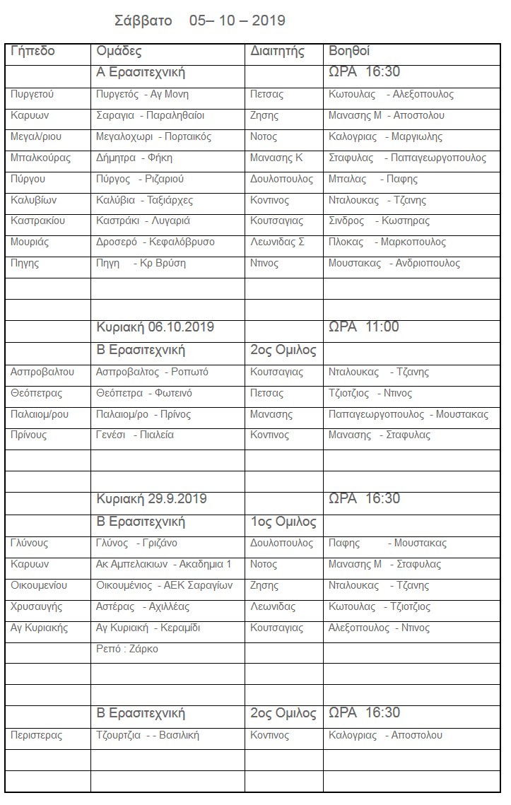 Από την ΕΠΣ Τρικάλων ανακοινώθηκε το πρόγραμμα των αγώνων και οι διαιτητές τους για το Σαββατοκύριακο 5 και 6 Οκτωβρίου.