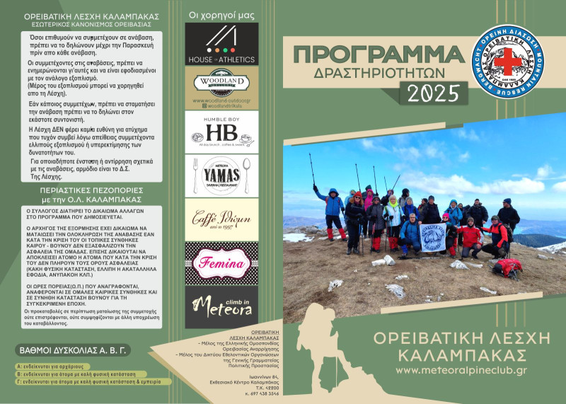 Από την Ορειβατική Λέσχη Καλαμπάκας ανακοινώθηκε το πρόγραμμα δραστηριοτήτων για το 2025!
