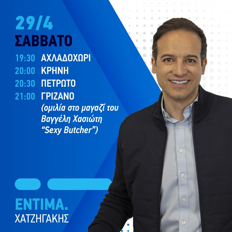 Ο υποψήφιος Βουλευτής της Ν.Δ. κ. Μικέλης Χατζηγάκης σήμερα Σάββατο 29 Απριλίου 2023 θα επισκεφθεί τις εξής κοινότητες του νομού Τρικάλων: