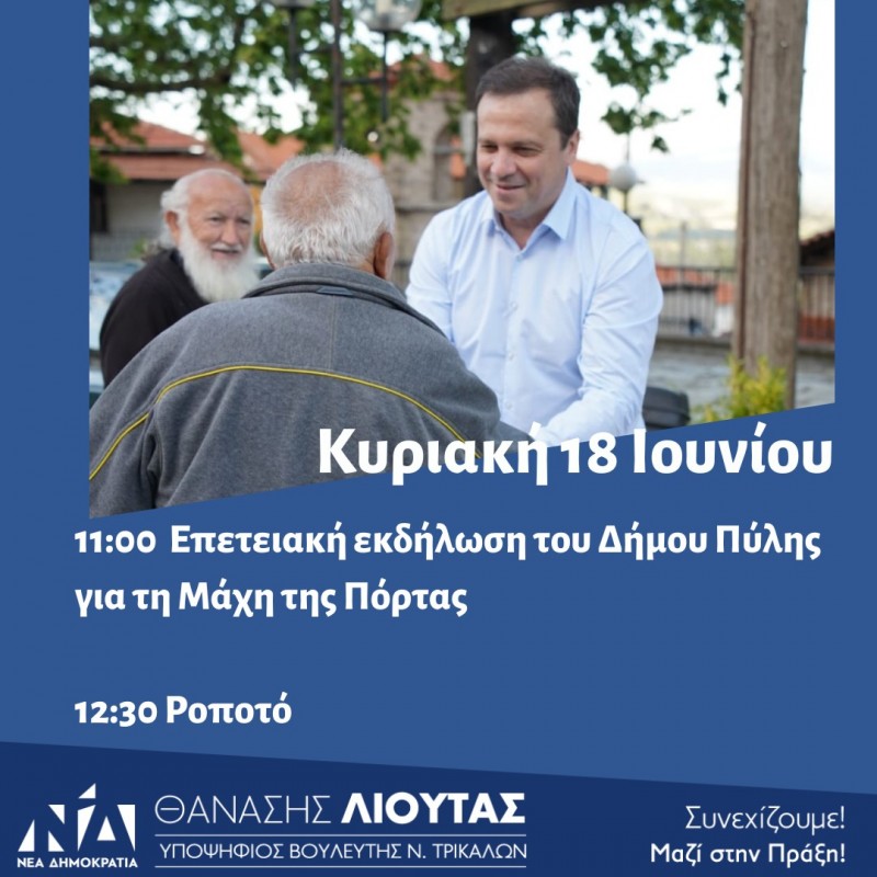 11:00 Επετειακή εκδήλωση του Δήμου Πύλης για την «Μάχη της Πόρτας»