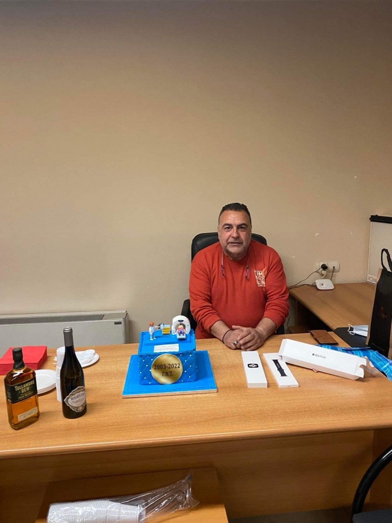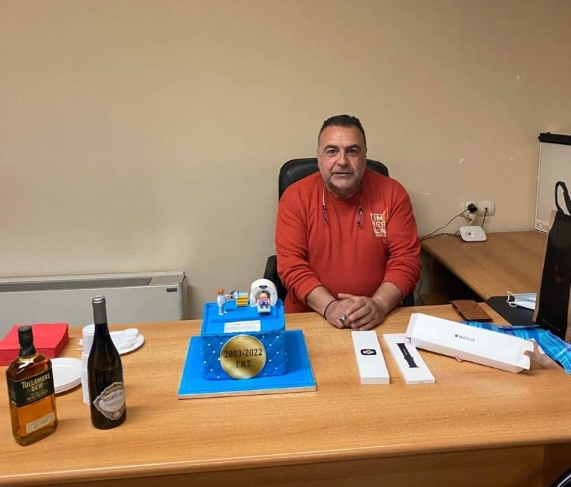 Σε κλίμα συγκίνησης πραγματοποιήθηκε τη μέρα της τελευταίας εφημέρευσης του, το αποχαιρετιστήριο στον Συντονιστή Διευθυντή του Ακτινολογικού Τμήματος Γ.Ν.Τ κ. Περίφανο Σπυρίδωνα.