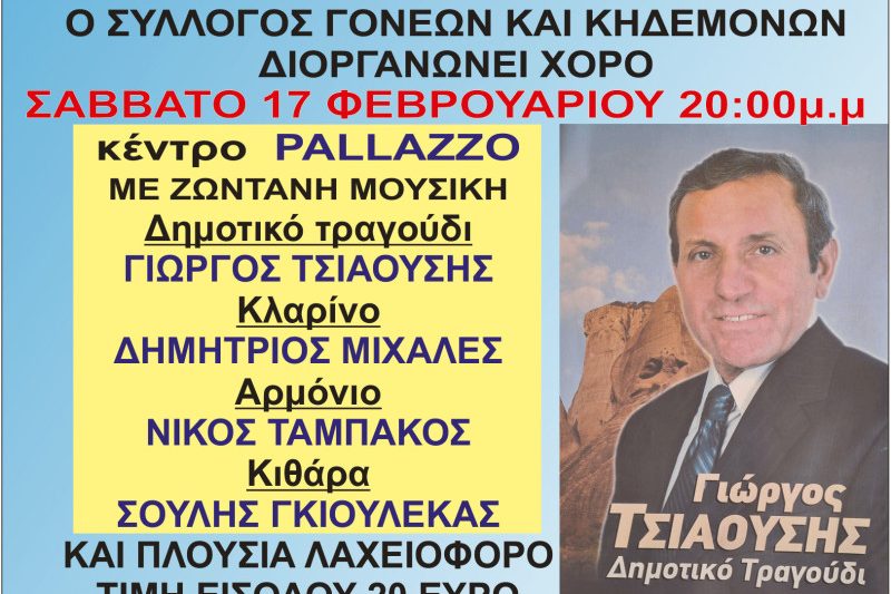 Στο τραγούδι θα είναι ο Γιώργος Τσιαούσης, στο κλαρίνο ο Δημήτρης Μιχαλές.