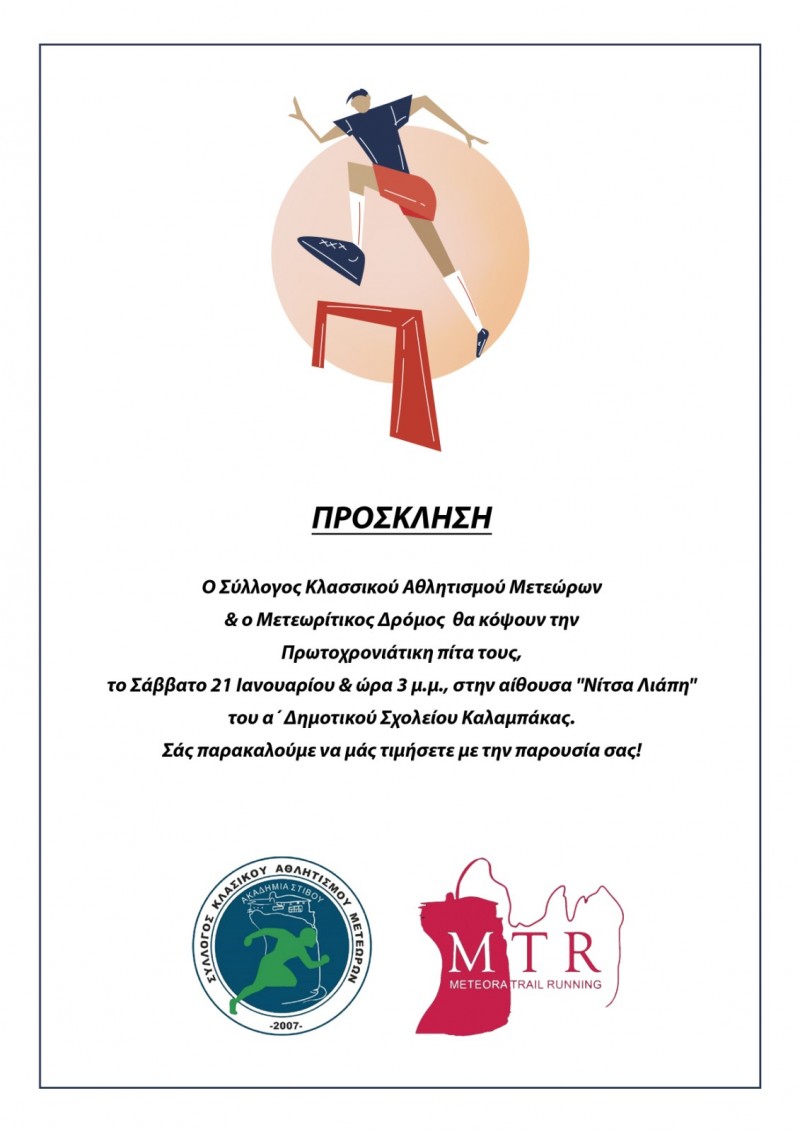 Το Σάββατο 21/1 κοπή πίτας των Ακαδημιών Στίβου του Σ.Κ.Α.Μ. και του Μετεωρίτικου Δρόμου
