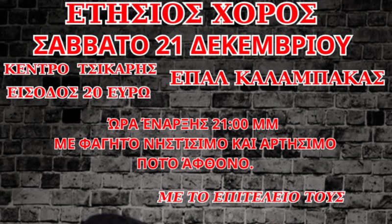 Το Σάββατο 21 Δεκεμβρίου το ΕΠΑΛ Καλαμπάκας πραγματοποιεί τον ετήσιο χορό του!