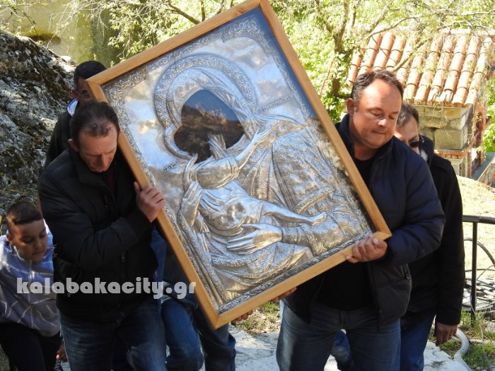 Επίσημη Υποδοχή της εικόνας στην Πλατεία του χωρίου ( σε περίπτωση βροχής στο ναό ) , όπου θα μεταφερθεί από την Ιερά Μονή Μεγάλου Μετεώρου που φυλάσσεται .
