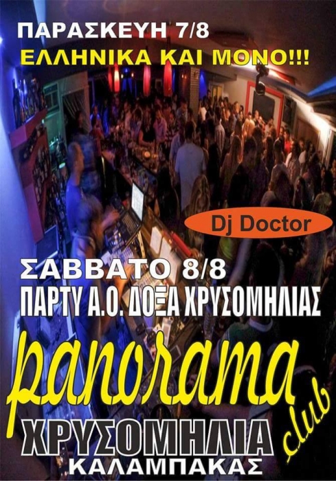 Το βράδυ του Σαββάτου 8 Αυγούστου, Διοίκηση και παίκτες της ομάδας “Α.Ο Δόξα Χρυσομηλιάς” σας καλούν διασκεδάσετε μαζί τους στο πάρτυ που διοργανώνουν στο club “PANORAMA” στην Χρυσομηλιά.