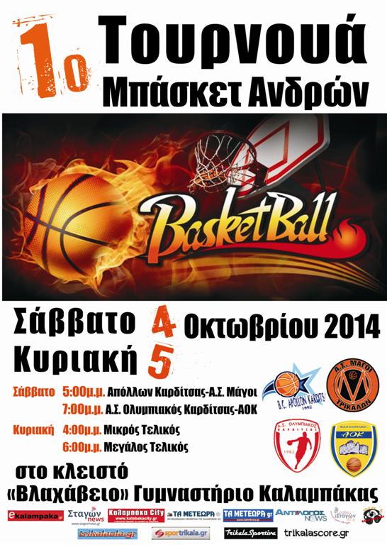 Ο Α.Ο. Καλαμπάκας σας προσκαλεί το ερχόμενο Σαββατοκύριακο 4 και 5 Οκτωβρίου 2014, στο κλειστό «Βλαχάβειο» Δημοτικό Γυμναστήριο της πόλης, για να παρακολουθήσετε το τουρνουά μπάσκετ που διοργανώνει, με τη συμμετοχή των ομάδων, Ολυμπιακού Καρδίτσας, Μάγων Τρικάλων και Απόλλων Καρδίτσας.