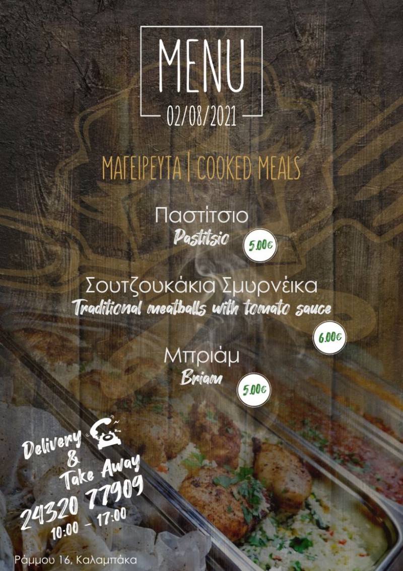 Το Οινομαγειρείο “Ο ΜΠΕΛΛ… ΑΛΗΣ” της Καλαμπάκας με το ποιοτικό φαγητό και τις ξεχωριστές του προτάσεις είναι και σήμερα κοντά σας με ειδικά διαμορφωμένο μενού!