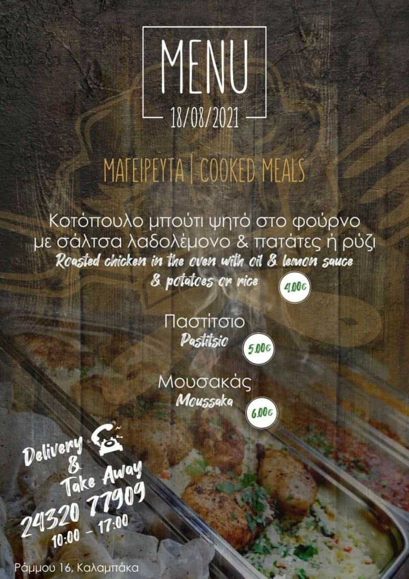Το Οινομαγειρείο “Ο ΜΠΕΛΛ… ΑΛΗΣ” της Καλαμπάκας με το ποιοτικό φαγητό και τις ξεχωριστές του προτάσεις είναι και σήμερα κοντά σας με ειδικά διαμορφωμένο μενού!